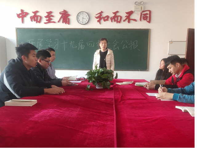 1113日,机械专业学生党支部组织全体党员和入党积极分子学习党的十九届四中全会公报,并进行形势政策教育。支部书记王虹在学习过后为大家作党的十九届四中全会公报学习辅导,重点解读了公报中制度”“治理等关键词,帮助大家了解掌握我国国家制度和国家治理体系的13个显著优势,加深对当前形势、政策、任务的认识和理解。