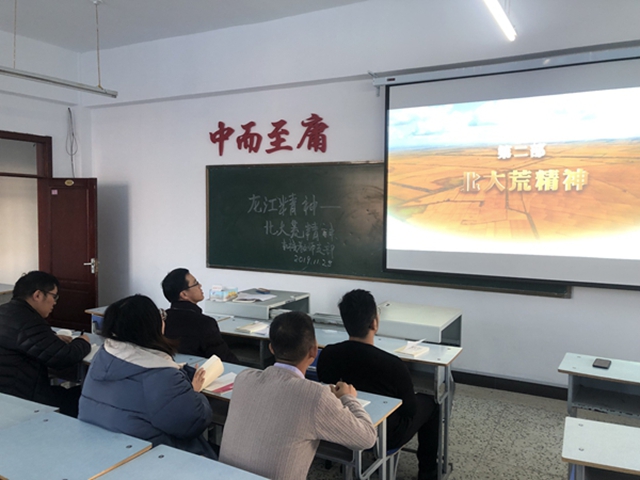 11月28日机械专业教师党支部按照“不忘初心、牢记使命”学习计划安排,召开龙江四大精神主题学习会,教师党员共同观看了反映北大荒精神纪录片。通过观看学习,大家深刻认识到北大荒精神的核心内涵是艰苦奋斗、勇于开拓、顾全大局、无私奉献,并结合自身教学工作情况纷纷交流分享北大荒精神对自己的激励和鼓舞。