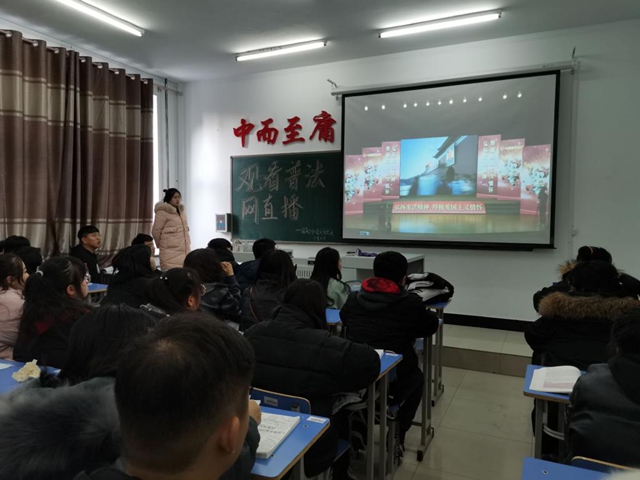 12月4日,健康与护理系团总支组织总支委员和护理学192班全体同学观看普法网直播,通过观看升旗仪式,跟读宪法部分条款,跟随北京主会场同唱《宪法伴我们成长》歌曲,进一步了解宪法、学习宪法、尊重宪法,体会宪法的高度权威、感受宪法的庄严神圣、领会宪法的内在精神。最后,团支书张莹带领同学们集体宣誓,表达对宪法的尊重。在接下来法治宣传月活动中,健康与护理系团总支还将继续组织开展多层次、多方位、多形式的宪法宣传系列活动。