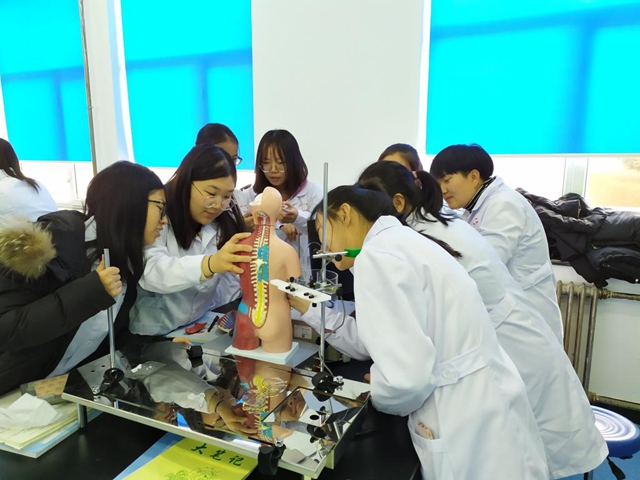 人体解剖学是医学类专业必修的一门学科基础课。目前,人体解剖学实验课主要应用数字模型和实体模型。针对学生反映在理论课学习了理论知识,但对器官的具体位置和结构不明确,练习护理技能时往往不能及时准确找到相应位置的问题,基础医学教研室通过数字模型教学提高同学们对人体整体结构以及各系统、各器官间的关联关系的认识;通过实体模型教学提高同学们对各系统和器官的微观解剖结构的认识,进而强化了专业理论与实际的结合,培养同学们的专业学习兴趣。