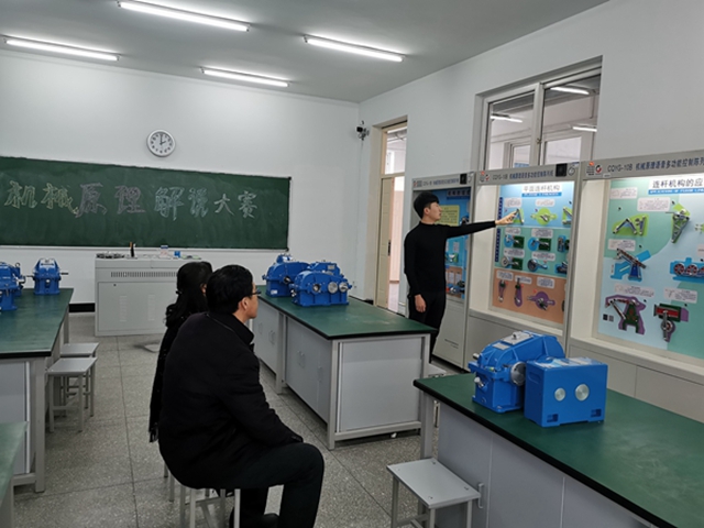 12月16日机械设计制造及其自动化专业在机械基础实验室举办机械原理动作模型讲解比赛,有3同学预赛选拔进入决赛。此次比赛项目,是由学生在全部机械原理动作模型展示柜中随机抽一个进行讲解。各班推荐的参赛选手积极备赛,利用个人休息时间,到实验室逐个展示逐个模型地进行机械原理学习和讲解演练,从中加深了对机械原理学习与掌握。