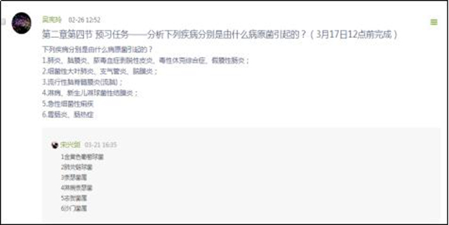 对所提供的学习通线上教学资源,我引导学生进行预习,让学生提前进入学习状态,并通过检查学生传入学习通的预习笔记、参与的主题讨论、作业、章节测验等了解学生的预习情况,为课堂辅导答疑教学奠定基础。