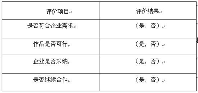 教师+企业评价。教师根据学生工作成果完成情况,核定学生平时成绩和期末成绩。企业根据学生提交的作品完成情况,核定作品是否通过企业审核,是否被企业采纳。