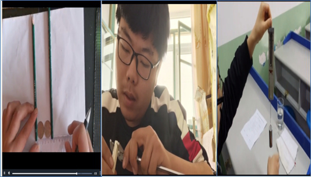 (一)课堂内外,作业相连。基于实验源于生活,教师组织学生课下通过实践活动作业,对实验进行深入探索,引导学生走进生活,研究身边的有趣物理现象。在家做实验,缺少实验器材,这给学生带来挑战的同时,也让学生体验到了“自己动手创造实验”的乐趣。学生们利用手机、卷尺、游标卡尺等身边家用物品,实验从头至尾由自己设计、操作,从体验过程中对实验课有了更深刻理解,这一过程也保证了学生学习成效。