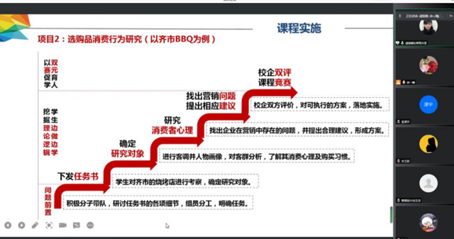 刘玉洁电子商务项目管理课程在明确课程定位基础上,依据课程教学目标生成二级矩阵、三级矩阵,并以淘宝直播项目的一个任务为例,分析了课程教学所需的人、机、料、法、环、测六要素,总结了课程评价的思路逯娅娜:《消费者行为学》课程从便利品、选购品、特殊品、未寻求品等四个方面设计项目,同时在消费者决策模型的基础上对课点进行了重构,形成了行动体系,重复的是工作过程,不重复的是工作内容,同时从人、机、料、法、环、测六个方面对课程进行了管理,以确保教师教学和学生学习的质量孙玲:《物流管理》课程从校企双育人的角度,重点突出企业专家在课程实施和课程评价阶段是如何参与到课程建设中,培养学生的专业实践技能宋玉丽:结合程序设计基础课程从课程定位、设计、实施、评价四方面展开,在课程定位部分重点突出如何从支撑毕业要求指标点导出课程教学目标,在课程实施部分,在人测机制下,进行课程实施。通过本次交流,对人机料法环测有了更进一步的认识孟津宇:在课程实施部分,带入真实的5G视商产业园项目,从PDCA的角度具体阐述课程的整体实施过程,使课堂上乏味的讲变为有趣的学,从而激发学生对学习的浓厚兴趣王文晶:在《管理学》课程实施中,依据专业建在支部上的做法,为课程实施提供了有效的制度保障。在专业导师团制度下建立本课程导师团实施细则,保为专业输送积极分子。在课程导师团实施细则中,党员教师,党员辅导员,学生党员在课前、课中、课后三个阶段完成相应任务,发挥作用。