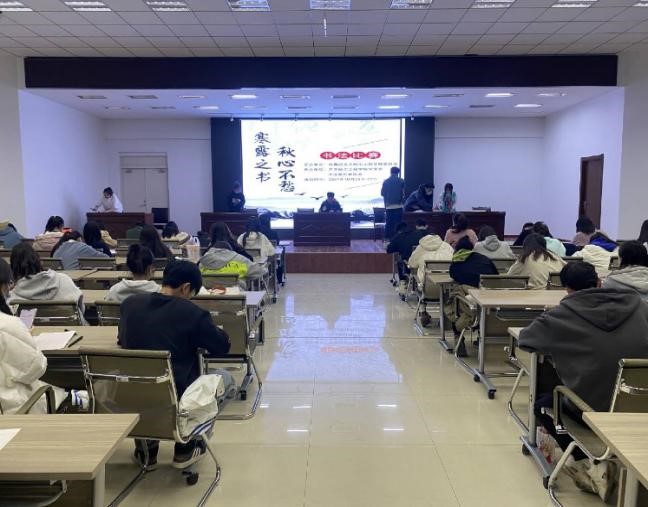 为弘扬中华民族传统文化,传承中国书法艺术,营造文化氛围,用笔墨书写“深秋”,1027日晚,由校团委主办,学生会、书法爱好者协会承办的“寒露之书 秋心不愁”书法比赛在二号教学区2508会议室举行,经过各系初赛,共26人进入决赛。