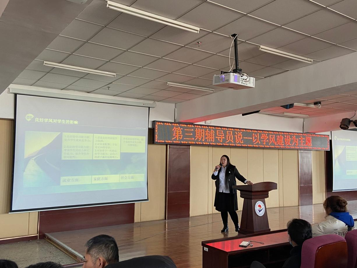 12月10日,在图书馆501学生工作处开展了以学风建设为主题的“第三期辅导员说”活动,来自五个系的辅导员进行了精彩的“辅导员说”,学校100余名学生参加。
