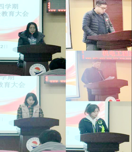 会上,学生工作副主任于晓玲宣读了机电工程系第四学期实施方案与第四学期成绩的学分要求,并提出,全体人员要积极完成各项活动和任务,指导教师要对学生进行跟踪指导;指导教师董晓亮讲述了第四学期的重要性及其实施的具体要求;学生代表侯美祺代表全体同学表达坚决完成第四学期学习内容和活动目标的决心;电气专业负责人高鹏讲明第四学期安全教育及相关要求。