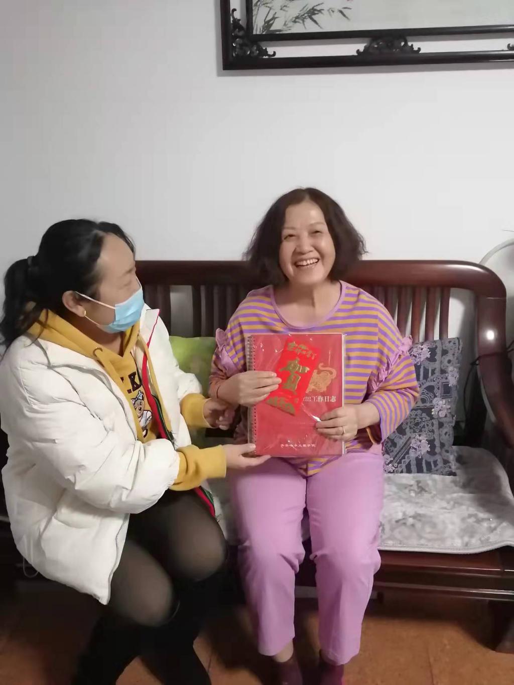 在新春佳节即将到来之际,学校工会副主席王丽萍、工会委员孟凡林代表学校工会,前往部分教职工遗属家中进行慰问探望,为他们送去了学校《2022年工作日志》及慰问金,并向他们致以新春的祝福和节日的问候。