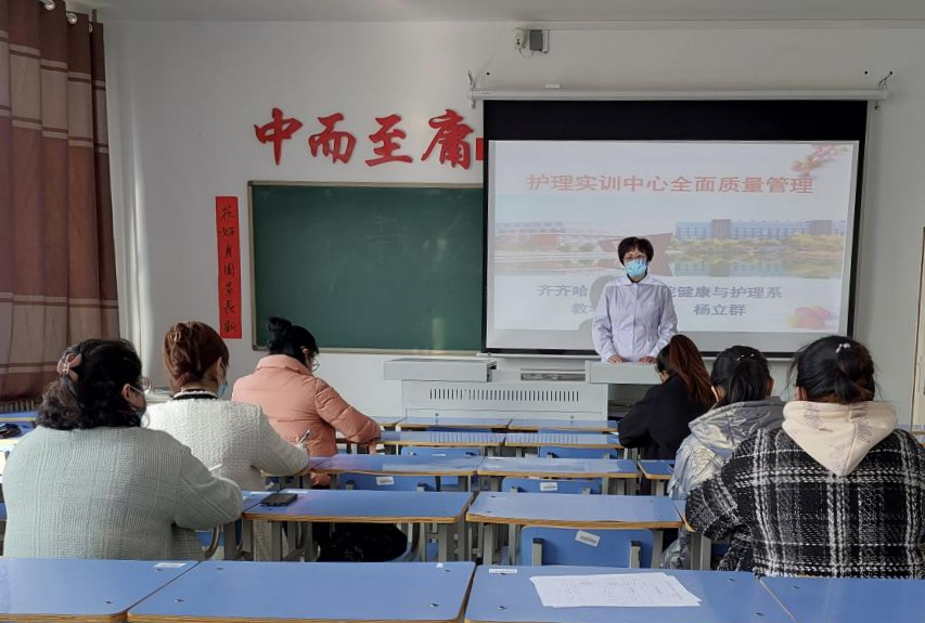 3月24日上午,健康与护理系在一号教学区1209教室组织召开实验人员培训活动,特邀系教学指导专家杨立群主讲,全体实验指导教师和实验技术人员参加。