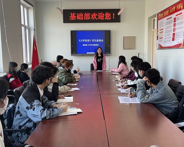 3月31日中午,基础部大学外语教研室组织召开《大学英语Ⅱ》课程学生座谈会。6名任课教师与2021级各班学生代表24人参会。课程长刘双丽主持。