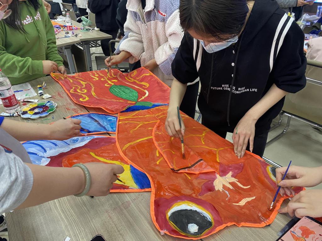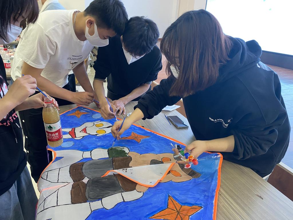 比赛期间,每组参赛选手在打底稿、调颜料、上色等制作程序上分工明确,整个绘制过程有条不紊,同学们按着心中设想的图案,用画笔在纸上缓缓展开,那一笔一画,一色一调,无不为梦想插上了翅膀。画作完成时,参赛选手的脸上都洋溢着开心的笑容,充分体会到团队协作的快乐。