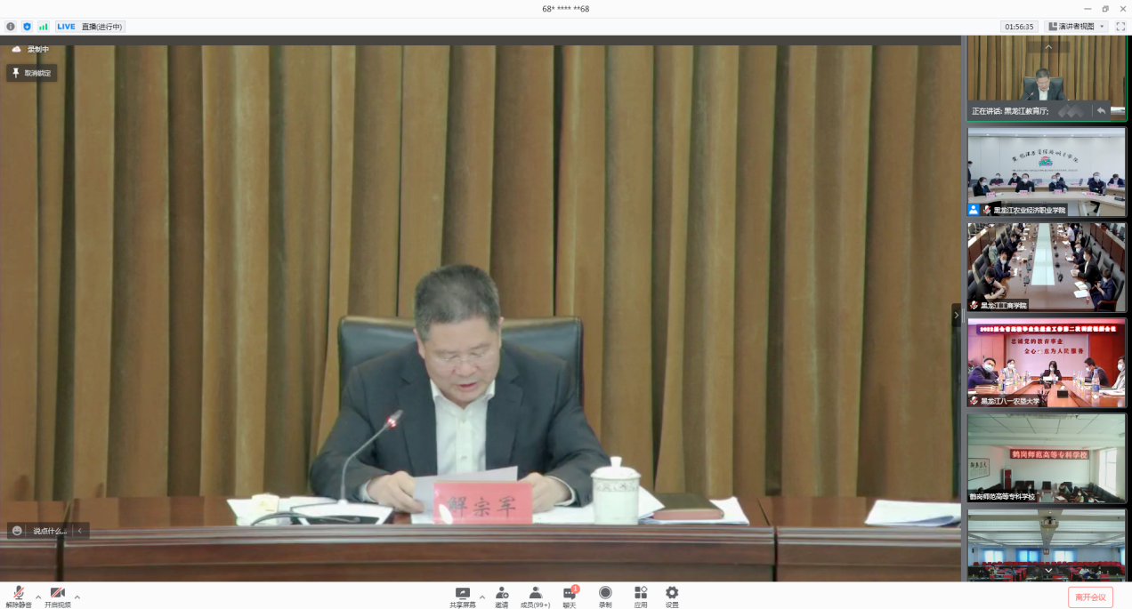 与会人员听取了哈尔滨工程大学、哈尔滨金融学院、黑龙江农业经济职业学院、黑龙江民族职业学院的就业经验介绍,认真学习领会了省教育厅党组成员、副厅长、省委教育工委副书记解宗军,省大学生就业创业服务中心主任郭承哲,省教育厅高校学生处处长刘志达三位领导的讲话精神。