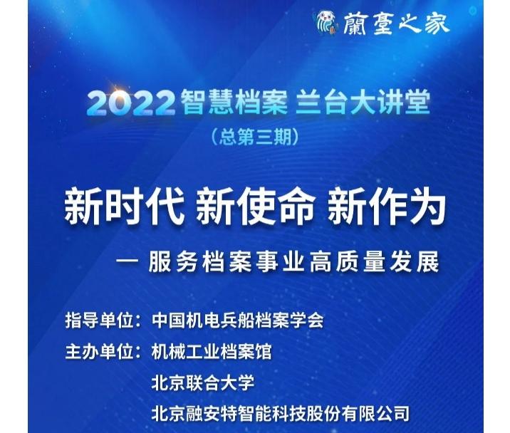 6月8日下午,学校办公室组织各部门档案员收看由机械工业档案馆、北京联合大学主办的“2022智慧档案兰台大讲堂第三期——《新时代 新使命 新作为——服务档案事业高质量发展》”现场直播。