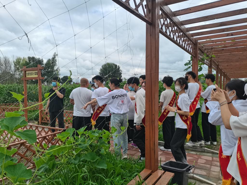 随后,绿色蔬菜基地经理都旭业带领大家参观了农庄、熟食加工厂、合作社荣誉墙,讲解了采摘园的情况;同学们感受到了田园气息,开拓了视野,拓宽了知识面。