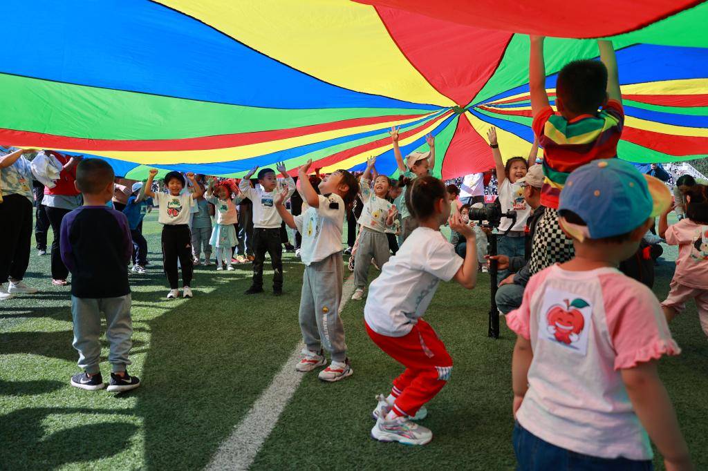 校工会领导和老师们为小运动员们精心设计了欢乐而有趣的“彩虹伞”“手印脚印向前进”“跳跃呼啦圈”“青蛙过河”“投掷沙袋”,以及“两人三足”家庭合作的运动项目。