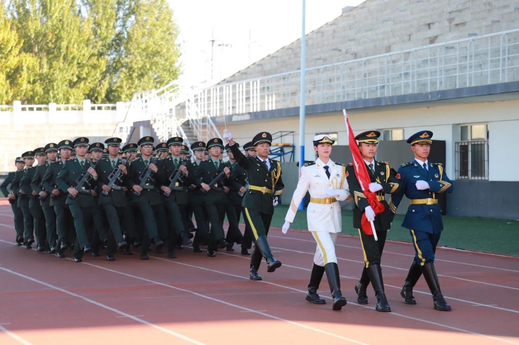 为讴歌伟大祖国73年的光辉历程,激发广大师生爱党、爱国、爱社会主义的热情,10月1日8时,校团委在体育场举办“同心筑梦迎国庆 青春献礼二十大”主题升旗仪式,教官团指导老师孙晓芳、校团委指导教师张云惠及教官团、全体校组织学生骨干,共400余人参加。