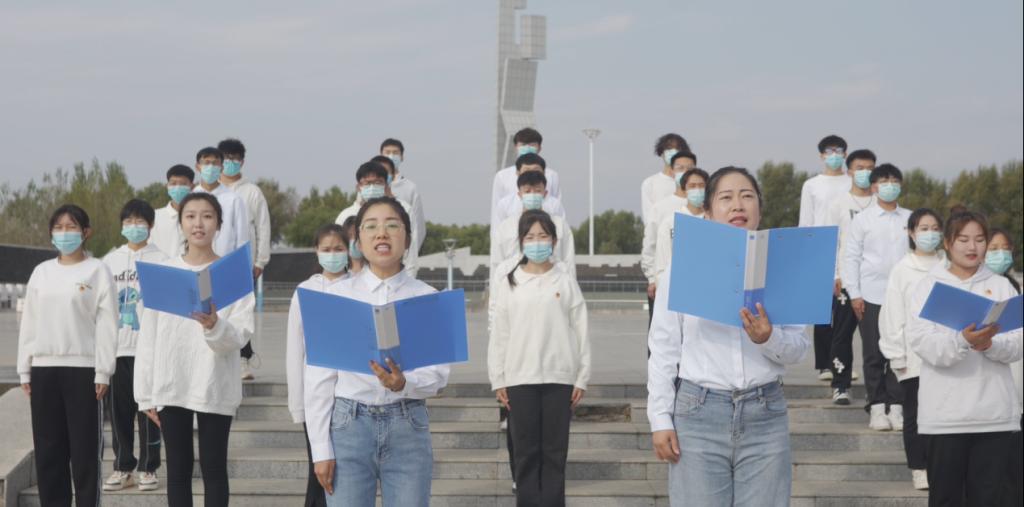思政教学部党支部青年教师陈阳、赵立莹带领学生在学校图书馆门前合唱《我和我的祖国》,用音乐表达对伟大祖国最深情的祝福,用嘹亮的歌声表达喜迎党的二十大的激动心情。