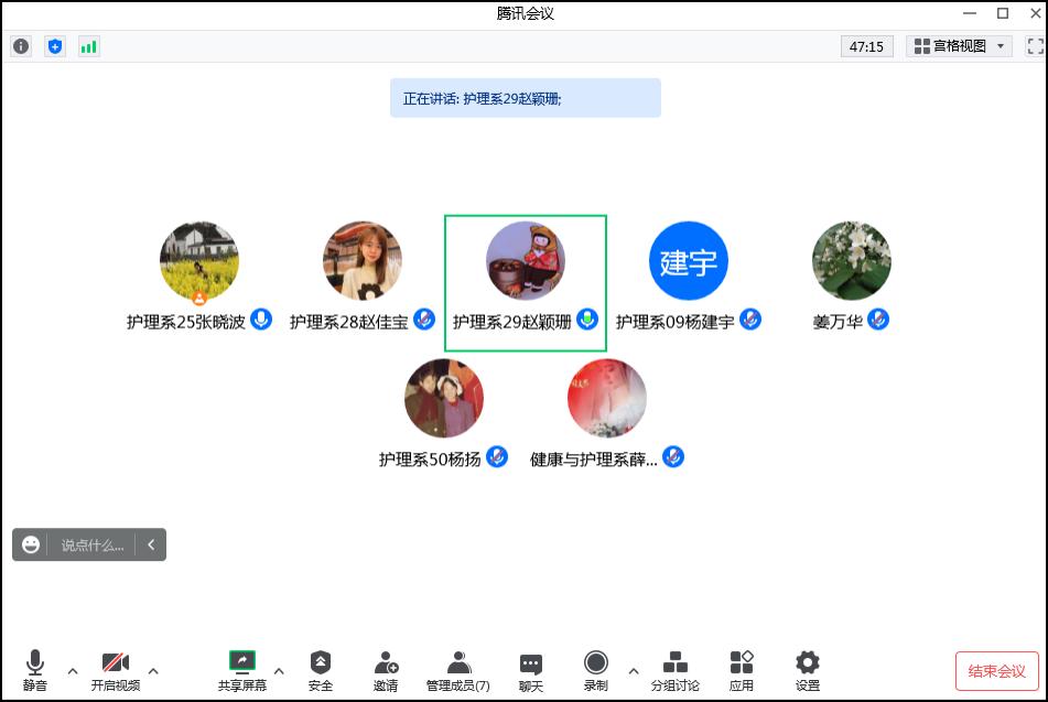 10月13日护理学专业线上组织2019级毕业实习阶段总结及分享交流会。毕业实习生及2020级共70名学生参加,实习指导教师孙晓雪主持。