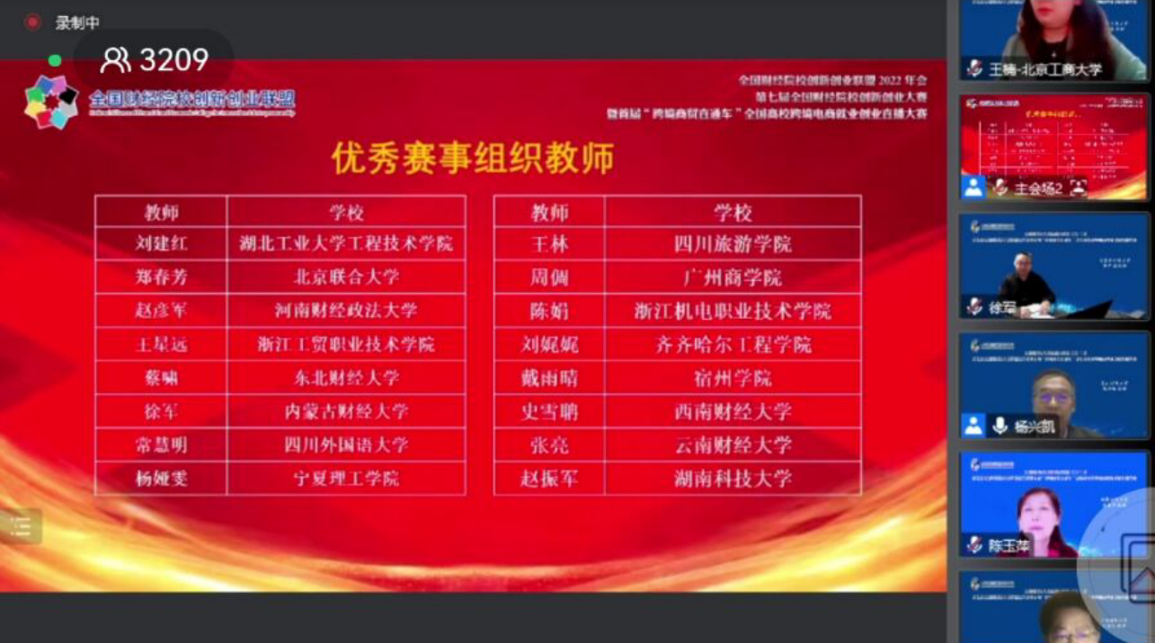 12月11日,“全国高校跨境电商就业创业直播大赛”组委会传喜讯:我校电子商务专业的四个团队、英语专业的一个团队获跨境电商赛道三等奖,刘娓娓老师获得“优秀赛事组织教师”称号。
