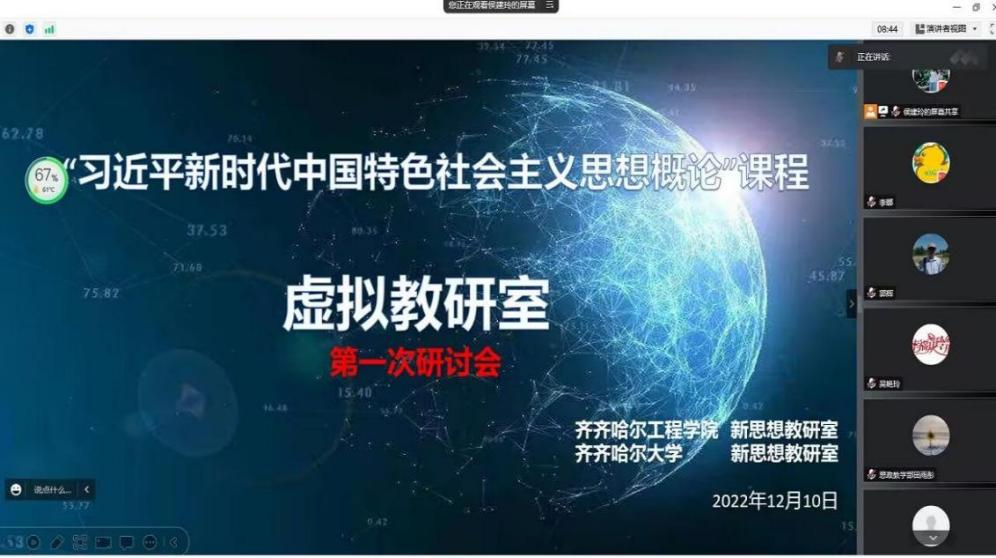 12月10日,我校思政教学部新思想教研室联合齐大新思想教研室建立“习近平新时代中国特色社会主义思想概论”课程虚拟教研室,并召开线上第一次研讨会。我校该部副主任李娜、齐大新思想教研室主任高歌及双方教研室的教师参会,我校课程长侯建玲主持。