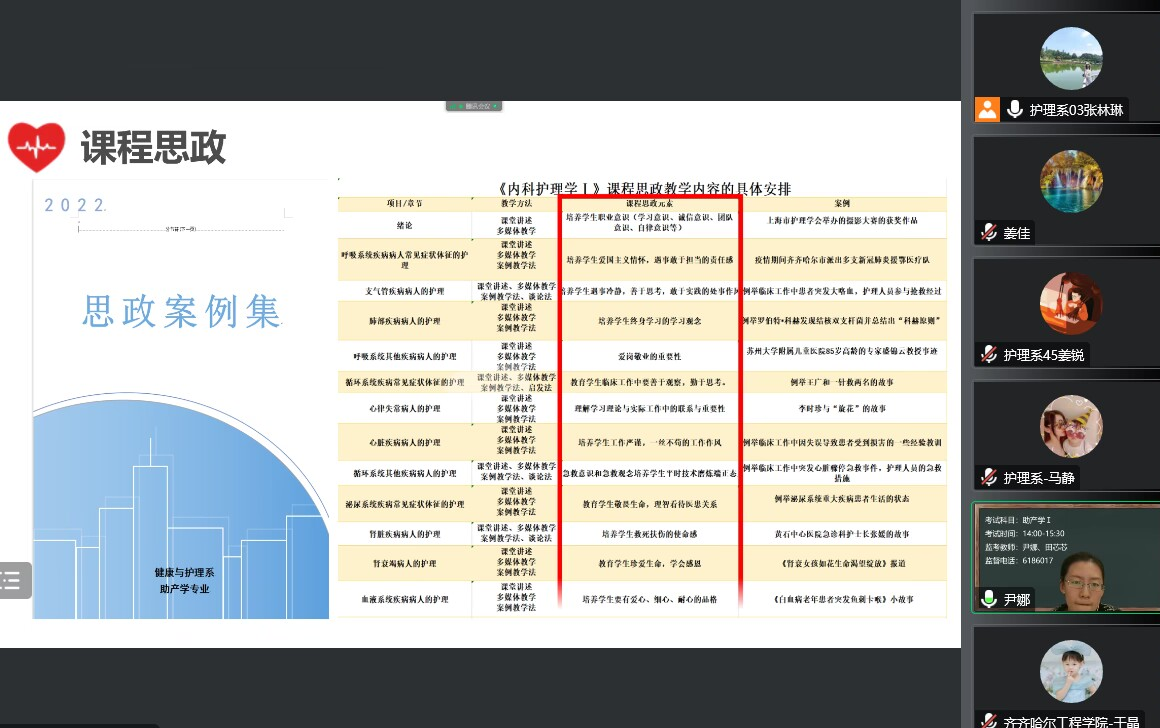 12月29日下午,护理学专业组织教师在线进行应用型特色课程交流评比活动。6名来校工作一年的教师参加,专业长张林琳主持。