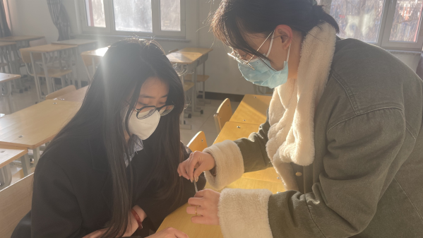 学生抗原自测呈阳性,校医向学校主管领导汇报学生感染情况,并进行登记,送学生进入健康驿站。