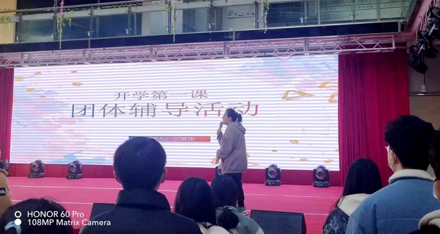 利用3月8日至9日的早自习时间,辅导员王丽伟组织2020级五个班级和2021、2022级四个班级的学生,分两个场次进行开学第一课——团体辅导活动。