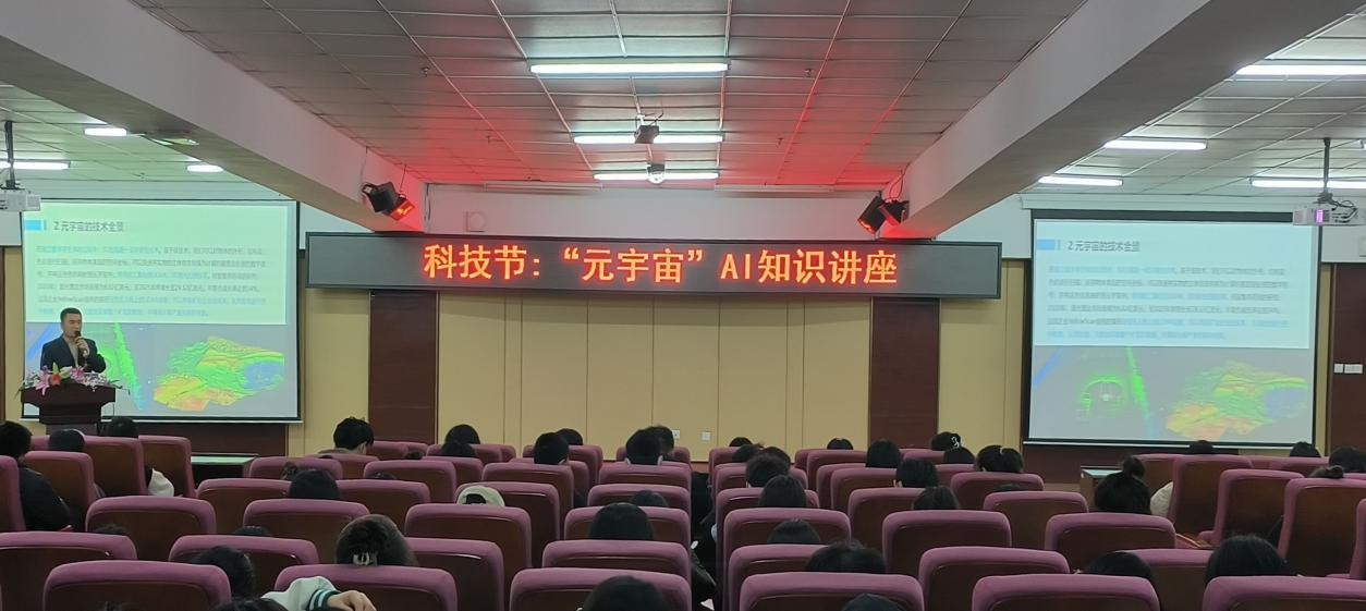3月24日晚,学校团委在图书馆501报告厅开展科技节系列活动,邀请信息工程系李士明老师为学生作关于《元宇宙与人工智能》为主题的讲座。200余名学生参加。