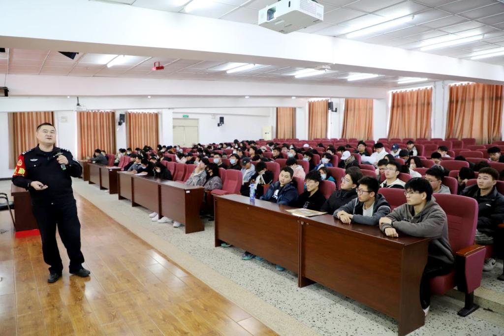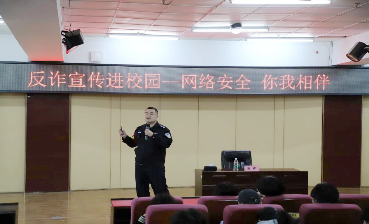 4月12日下午,校团委在图书馆501报告厅开展“反诈宣传进校园——网络安全·你我相伴”主题讲座,特邀请市公安局网络安全保卫支队教导员谢辉主讲。300名学生参加。