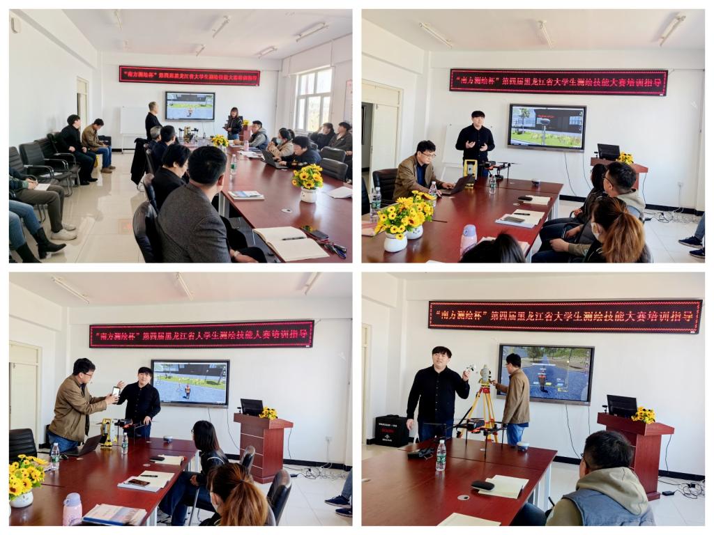4月18日,建筑工程系邀请广州南方测绘科技股份有限公司黑龙江省总经理朱洪成、副总经理郭嵩、事业部主管张红星,黑龙江省东北林业大学教授付开隆在二号教学区2409会议室进行测绘技能大赛培训,为“南方测绘杯”第四届黑龙江省大学生测绘技能大赛做准备。30余名师生参加了培训,系教学副主任徐明主持。