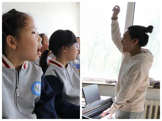 在三号教学区,孩子们和老师互动,试唱练声,最开心的是同唱《小小花园》。