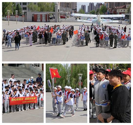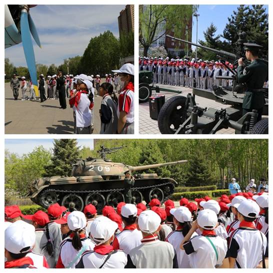 孩子们倾听志愿者讲述飞机与鲲鹏展翅的象征意义,参观国防教育基地,了解武器装备,感悟亮剑精神。