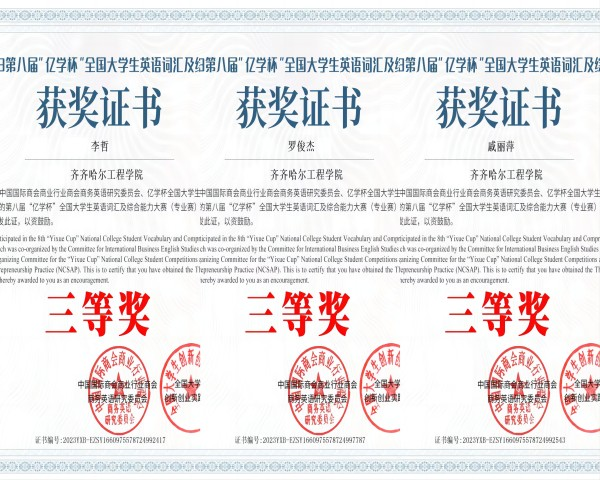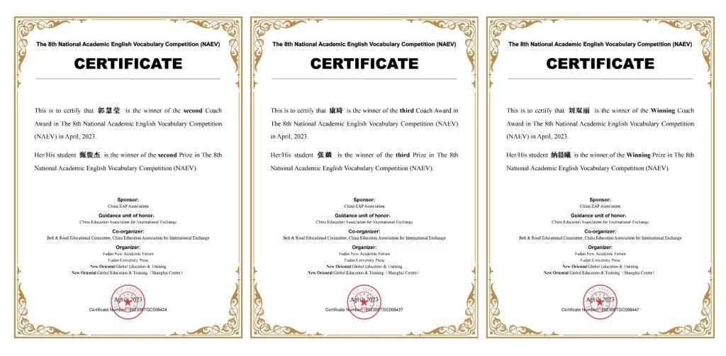 5月21日, 第八届全国大学生学术英语词汇竞赛结束,我校英语专业学生取得了二等奖3名,三等奖1名,优秀奖3名的成绩。