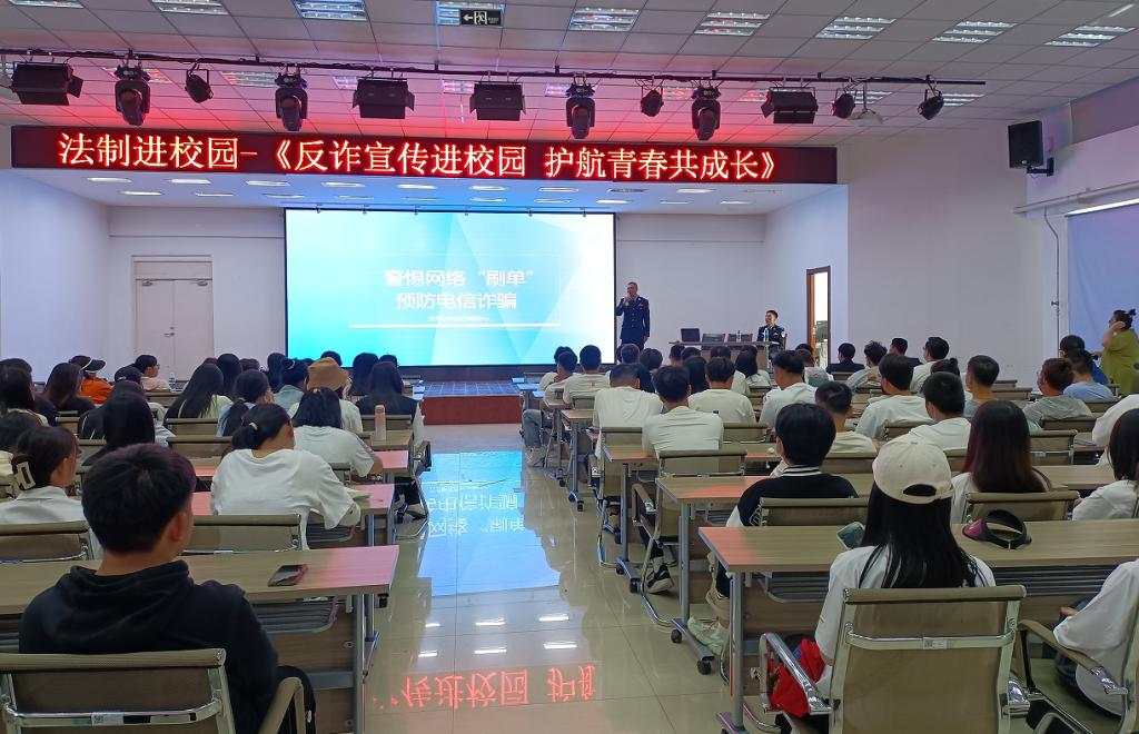 6月2日下午,市反诈骗中心、市公安局高新分局在二号教学区2508教室开展法治进校园主题宣讲活动,管理工程系和建筑工程系200余名学生参加, 管理工程系王丽伟老师主持。