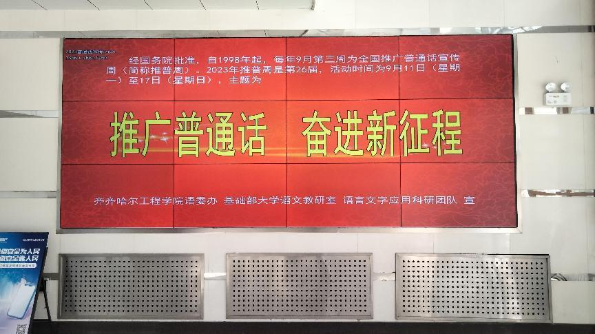 正值第26届全国推广普通话宣传周之际,科研团队联合校语委办、大学语文教研室近日积极组织多项活动,集中收看2023年全国推广普通话宣传周黑龙江启动仪式,通过印刷宣传海报、播放宣传片、开展诵读比赛等方式,共同营造良好的校园推普氛围。