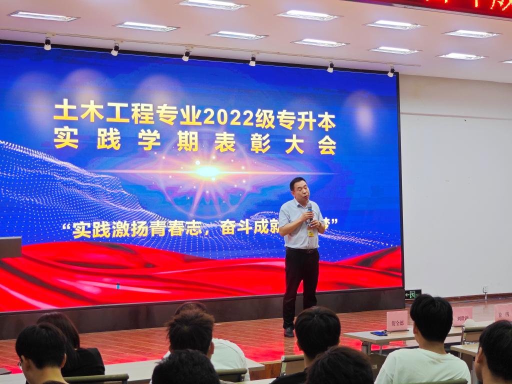 9月7日18时,建筑工程系2022级专升本专业实践学期总结表彰大会在2号教学区2508室举行。系党总支书记、副主任徐明,副书记、学生工作副主任刘贤鹏,教学副主任郝丽娜,土木工程专业负责人钟美慧、教师代表贺全德,以及全体2022级专升本全体学生、2023级专升本及普本学生代表参加。