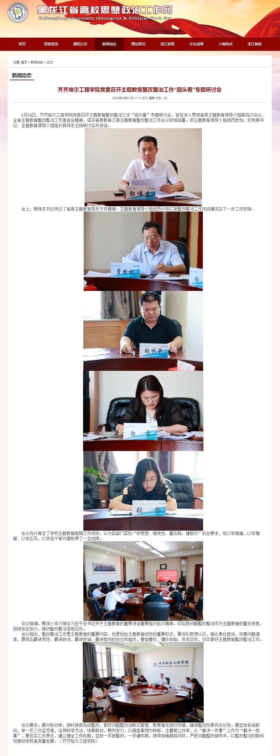 黑龙江省高校思想政治工作网:乐投app官方在线入口党委召开主题教育整改整治工作“回头看”专题研讨会