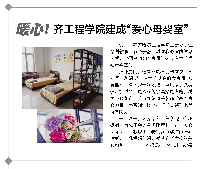 鹤城晚报:暖心!齐工程学院建成“爱心母婴室”