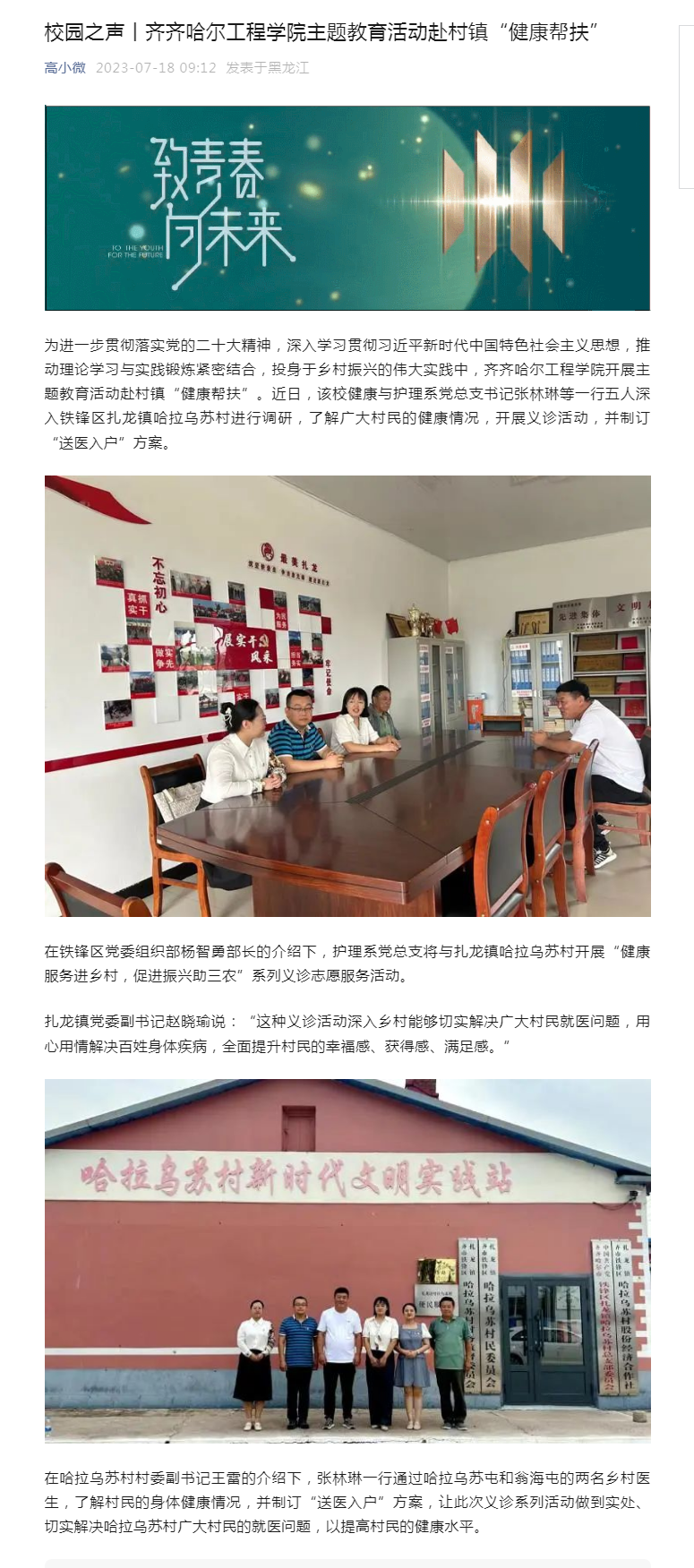 黑龙江高校广播(高小微公众号):乐投app官方在线入口主题教育活动赴村镇“健康帮扶”