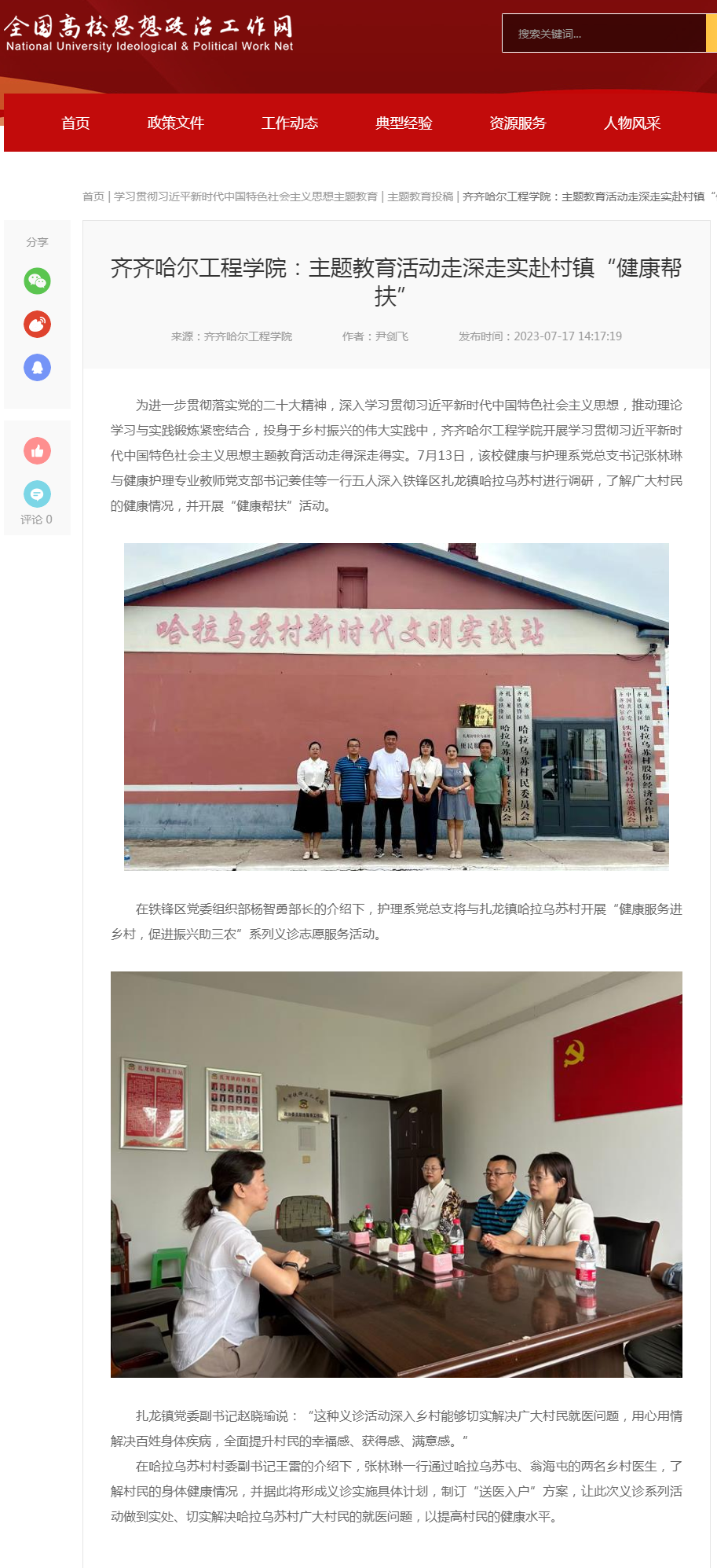 全国高校思想政治工作网:乐投app官方在线入口:主题教育活动走深走实赴村镇“健康帮扶”