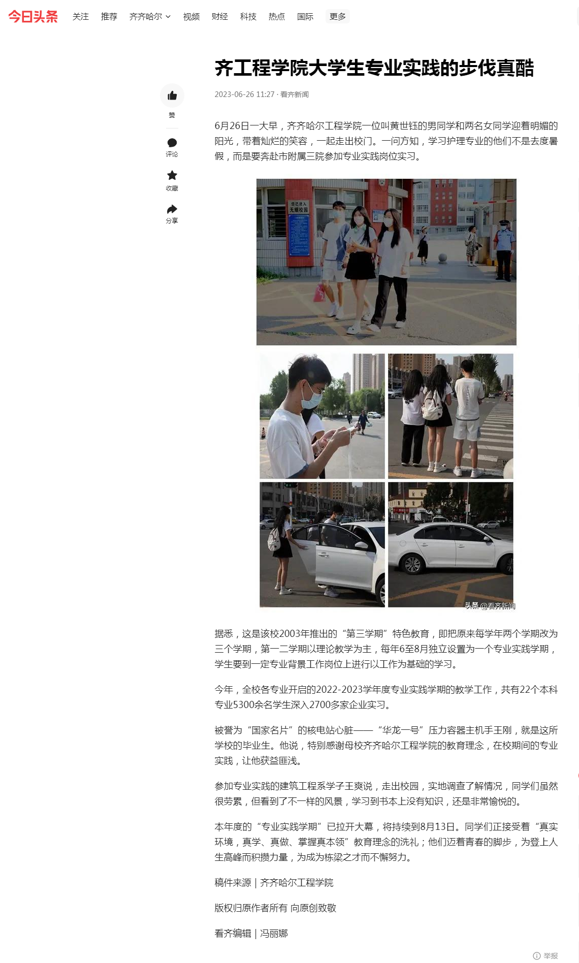 看齐新闻:齐工程学院大学生专业实践的步伐真酷