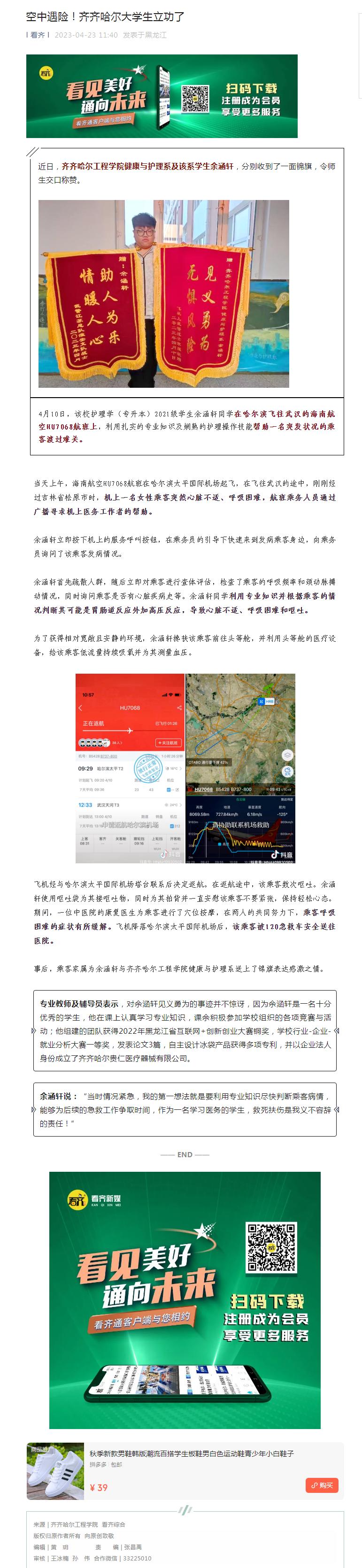 看齐:空中遇险!齐齐哈尔大学生立功了