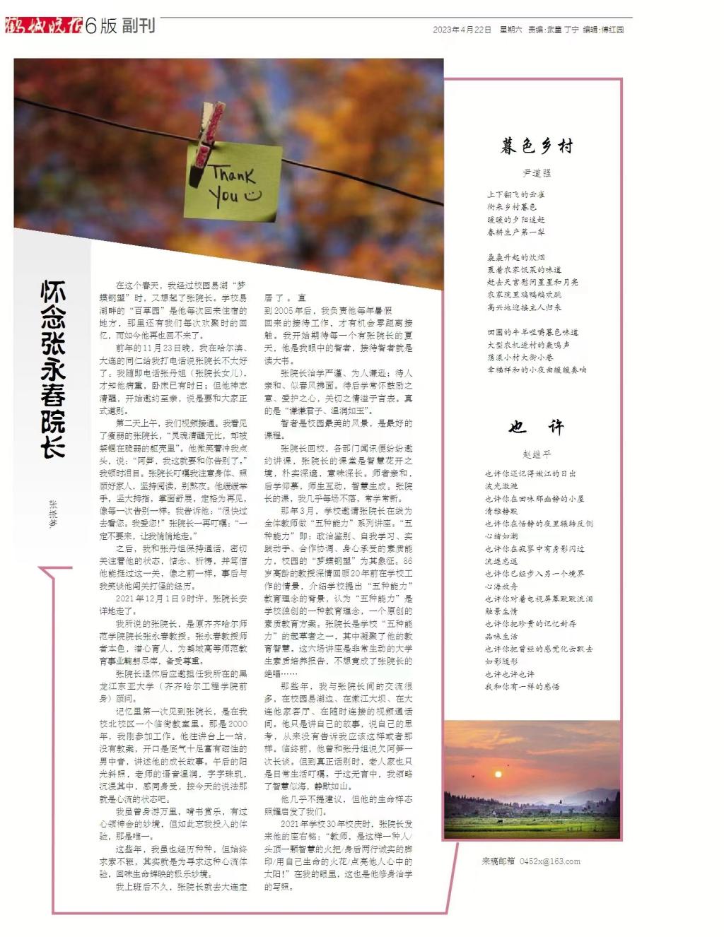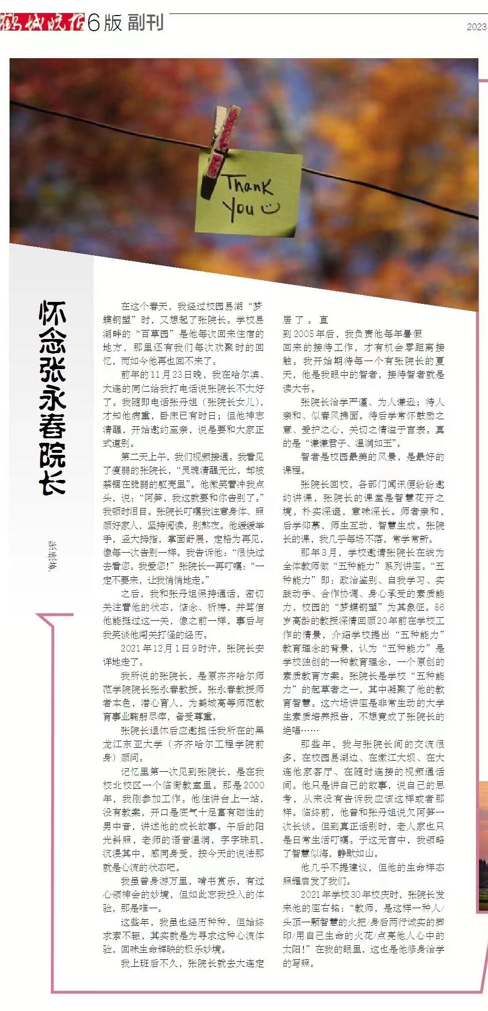 鹤城晚报:怀念张永春院长