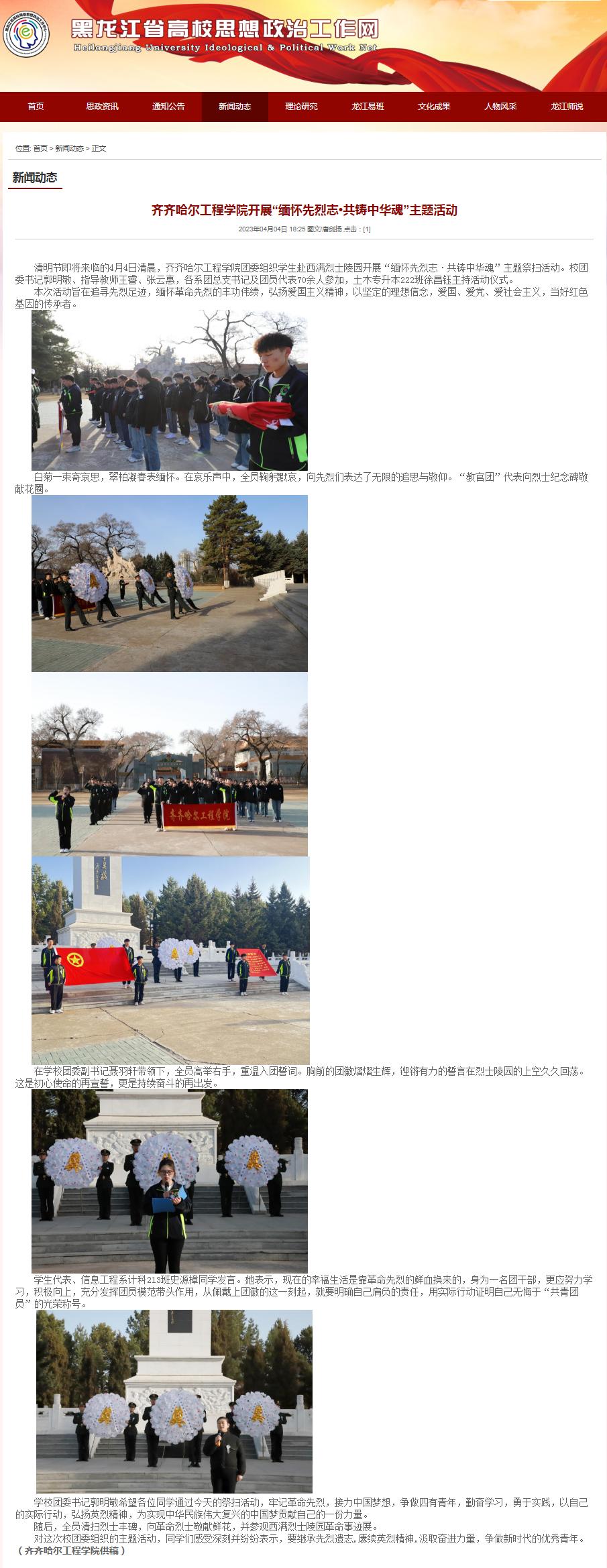 黑龙江省高校思想政治工作网:乐投app官方在线入口开展“缅怀先烈志•共铸中华魂”主题活动
