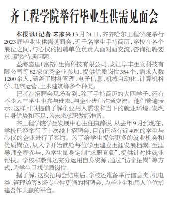 齐齐哈尔日报:齐工程学院举行毕业生供需见面会