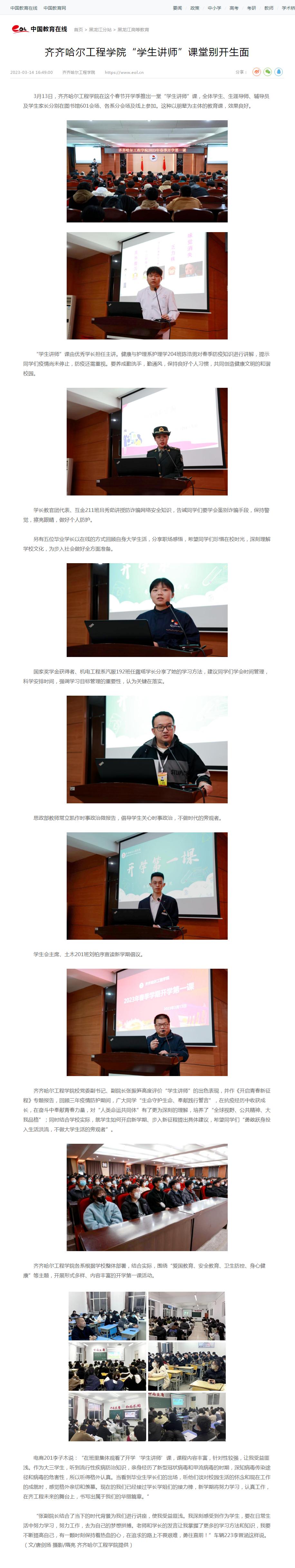 中国教育在线:乐投app官方在线入口“学生讲师”课堂别开生面