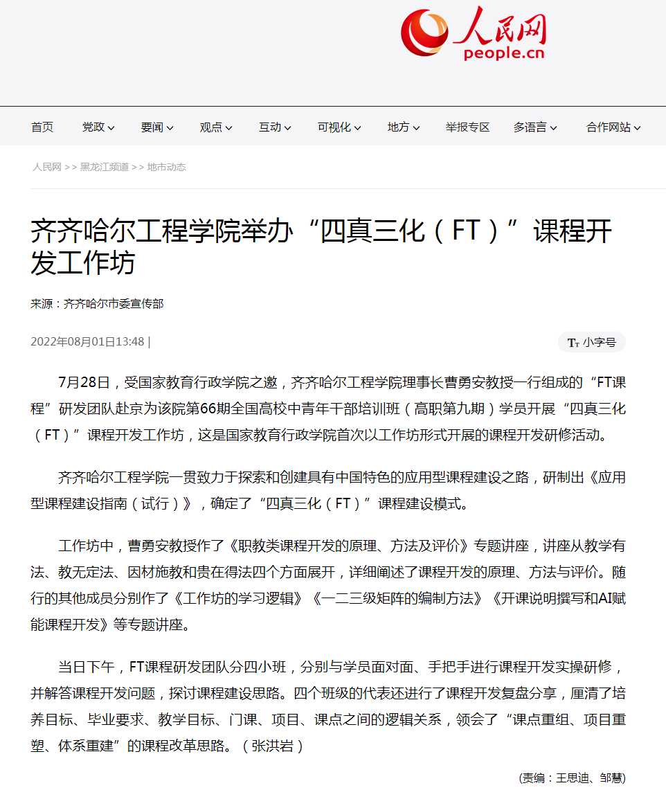 人民网:乐投app官方在线入口举办“四真三化(FT)”课程开发工作坊
