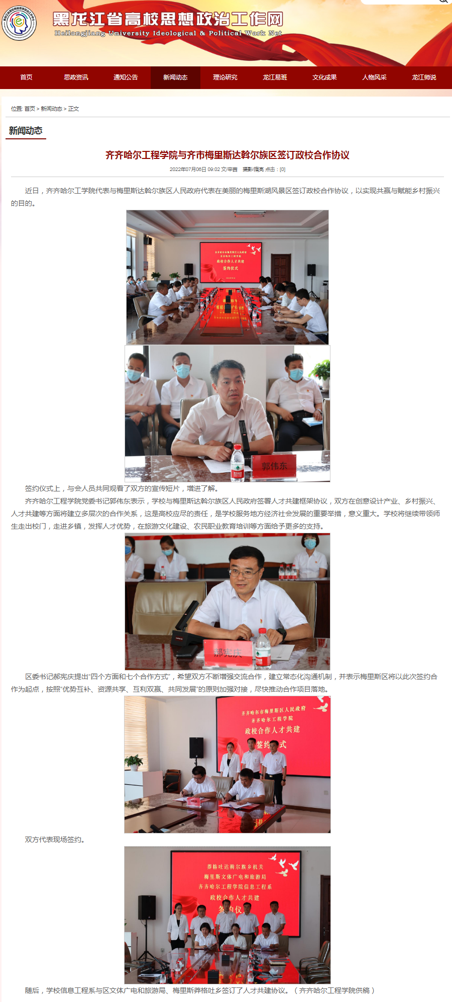 黑龙江省高校思想政治工作网:乐投app官方在线入口与齐市梅里斯达斡尔族区签订政校合作协议