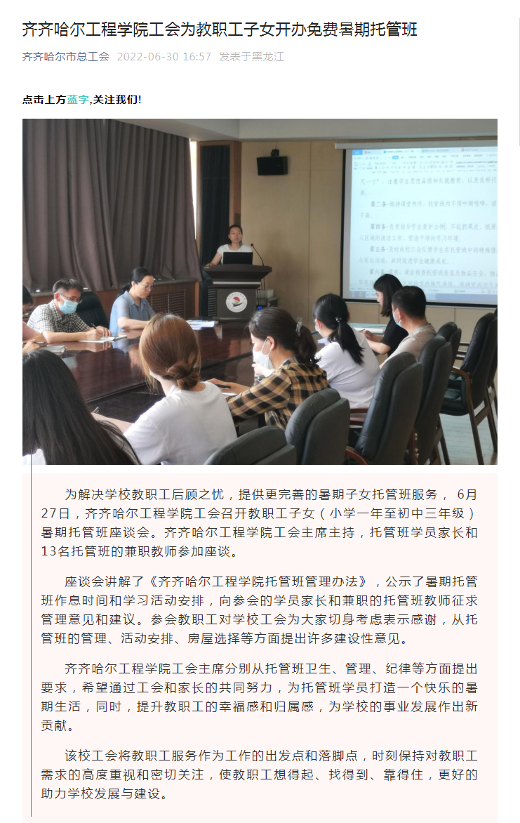 齐齐哈尔市总工会:乐投app官方在线入口工会为教职工子女开办免费暑期托管班